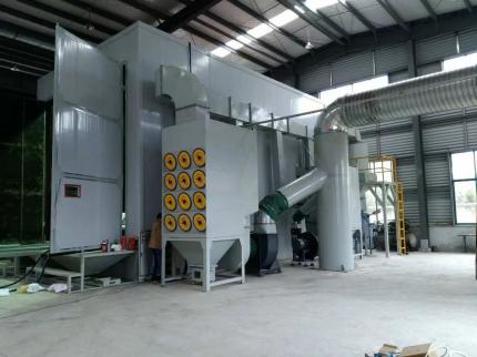 6、噴砂室體采用了上部進風,下部和側部均可進行吸風的抑塵循環方式。粉塵始終向下引流,室內能見度高,員工操作環境好,同時保護了工人健康;